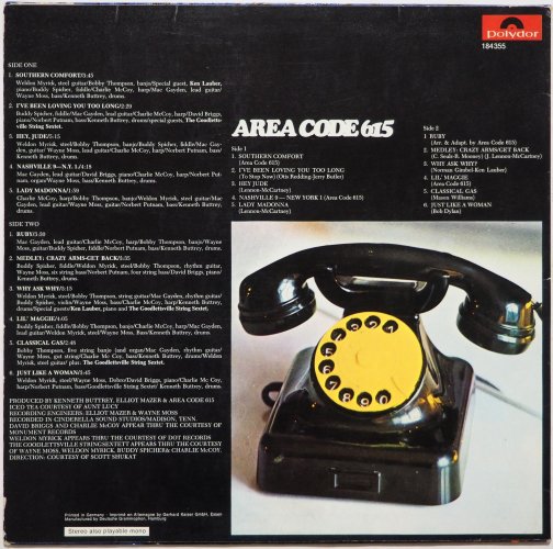 Mac Gayden, Charlie McCoy, Bobby Thompson, Wayne Moss, Buddy Spicher, David Briggs, Norbert Putnam, Kenny Buttrey, Weldon Myrick。お膝元テネシー州ナッシュビルの市外局番をバンド名にした腕っこきのセッションマンたち。