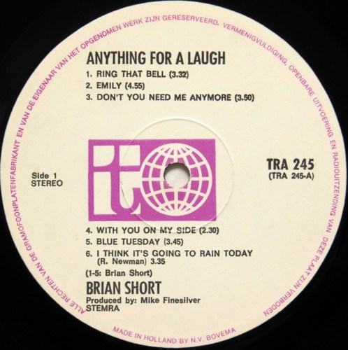 ブライアン・ショートの71年唯一ソロ作「エニシング・フォー・ア・ラフ」。