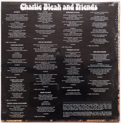 オリジナルは76年の「レット・ミー・イン」。これは80年にジャケット、タイトルを変更してリリースされたもの。タイトルが「チャーリー・ブリーク・アンド・フレンズ」となっていますが、裏面に友人達への感謝が掲載されてるようにおそらく皆のカンパによって再発にこぎつけたものと想像されます。つまり自主制作盤だと思います。