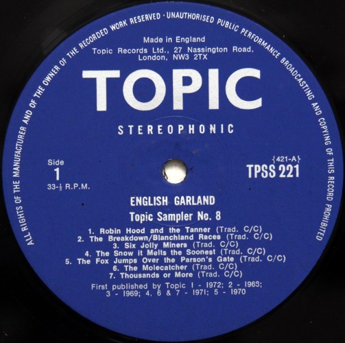 英国のトラッド・レーベル、トピックの72年オムニバス盤「イングリッシュ・ガーランド」。