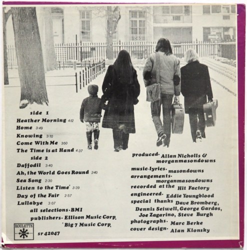 このアルバムは表の写真でなかなか良さそうと思って、裏の写真見て我慢できなくなって買ってしまうのがフォークファンの性というものですが、本作は裏ジャケ買いで大正解です。雪ジャケ大好きな私はこの写真だけで色々な物語を空想して1時間ぐらいは過ごせてしまいますね。