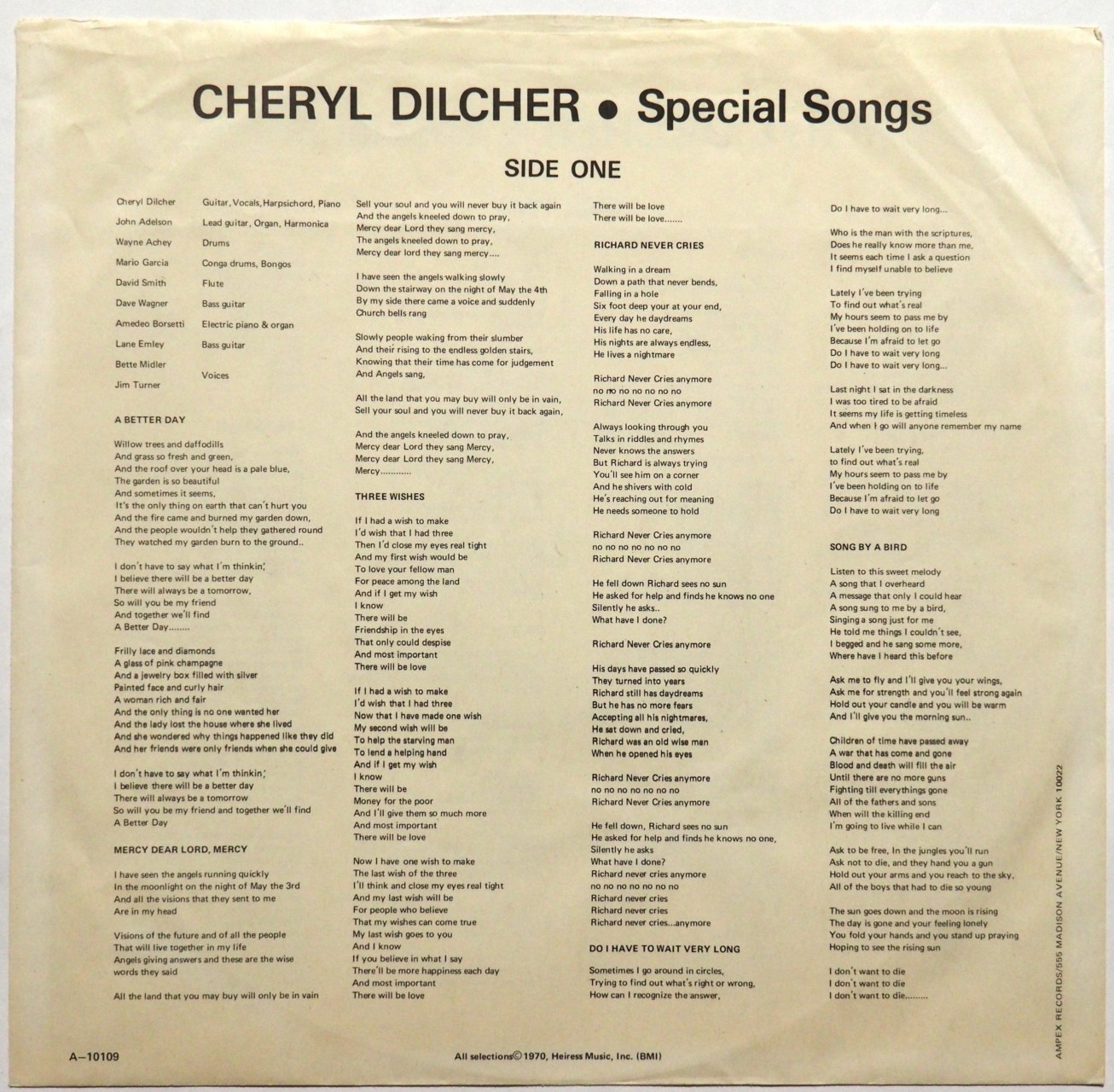 シェリル・ディルチャーの70年デビュー作「スペシャル・ソングス」。