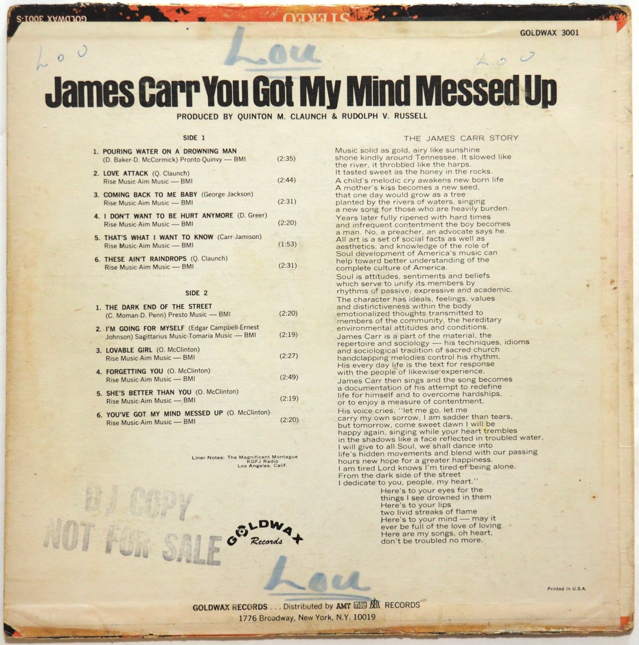 2L-15975 - James Carr / You Got My Mind Messed Up (US Goldwax Original Mono Whie Label Promo!!) - Sold Out