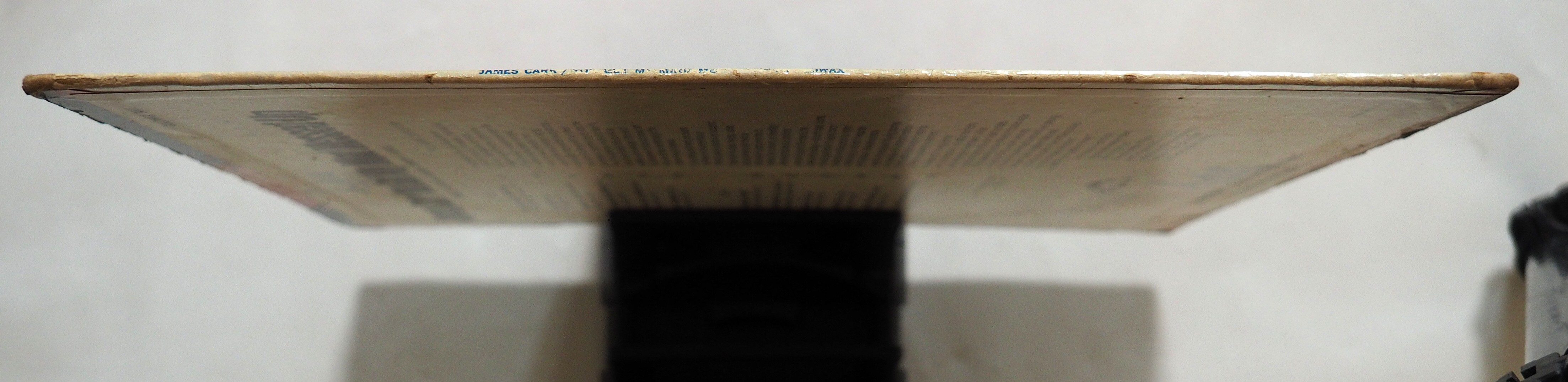 ジャケット:四隅スレ。上下辺強いスレ(8割方ハゲ)、よく見ると上下辺とも割れており内側からテープで補修。正面薄スレ少々、下辺沿いに補修テープを剥がした跡。裏面薄汚れ、名前の書き込み、プロモスタンプ。
