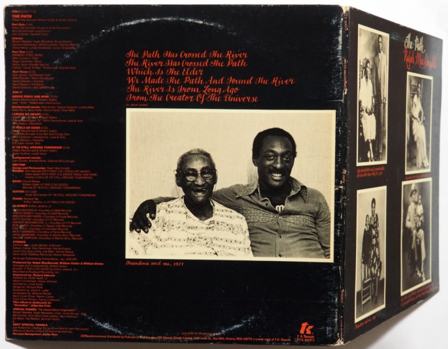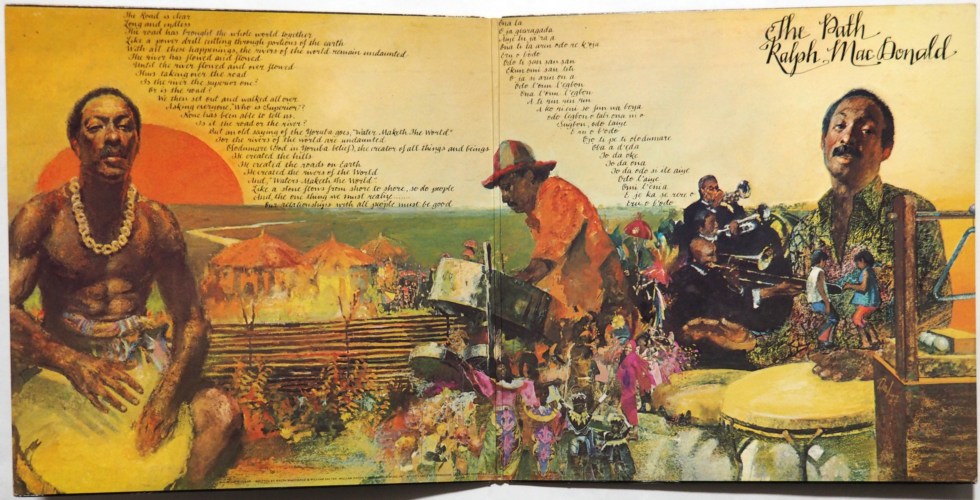 A面すべてを使った「ザ・パス」は3パート(といっても切れ目なく連続しています)からなる大曲で、見開き中面のようにアフリカン・リズムから始まっていつのまにかカリブ海に移り最後は北米大陸のジャズで終わるという構成でしっかり聴かせてくれます。