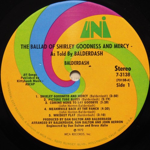 バルダーダッシュの72年唯一ソロ作「ザ・バラッド・オブ・シャーリー・グッドネス&マーシー」。