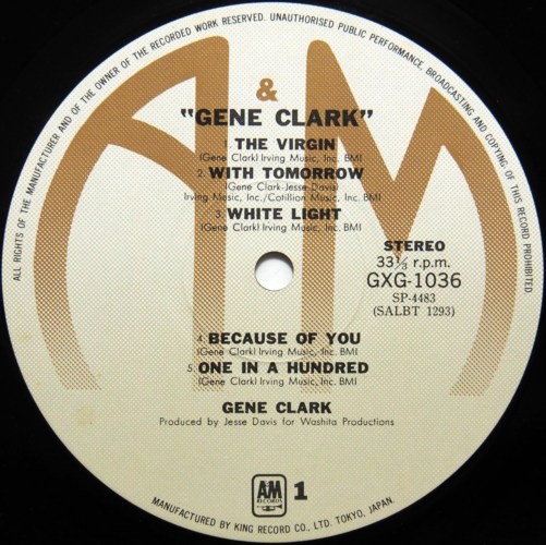 楽曲のよさ、バックの完璧さ、アルバムとしての構成の素晴らしさ、そしてもちろん心に染み渡るようなジーン・クラークのヴォーカルの素晴らしさと、どこをとっても完璧なシンガーソングライター・アルバムではないでしょうか・・・