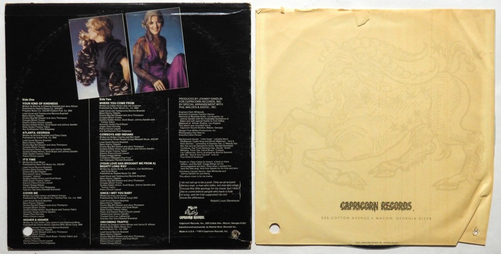 Bonnie Bramlett ; Lead Vocal Kenny Tibbetts ; Bass Big Bill Stewart ; Drums Jerry Thompson ; Percussion Jaimoe ; Congas Chuck Levell ; Electric Piano Eddie Hinton, Scott Boyer ; Guiter Tommy Talton ; Slide Guiter Gregg Allman ; Organ Tom Ridgeway ; Arp Synthesizer Randall Bramrett ; Soprano Sax