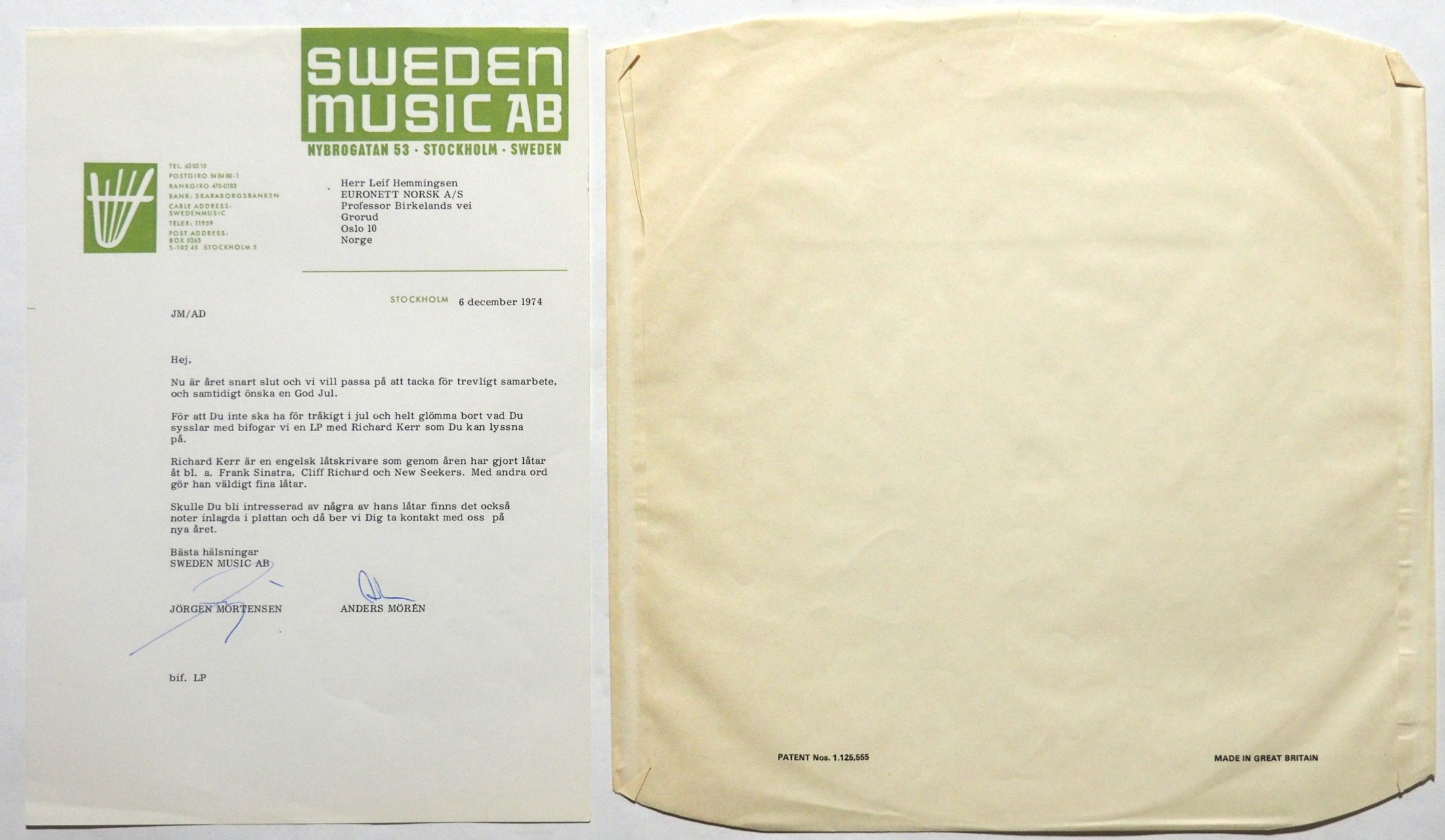 Sweeden Music ABというレーベルのお手紙が入っています。