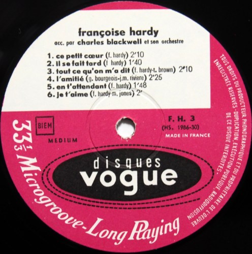 *** LP : France 1965 / Disques Vogue / C. F. H. 3 ***