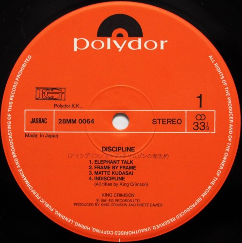 5L-02079 - King Crimson / Discipline (JP) - 2,780円(税込)