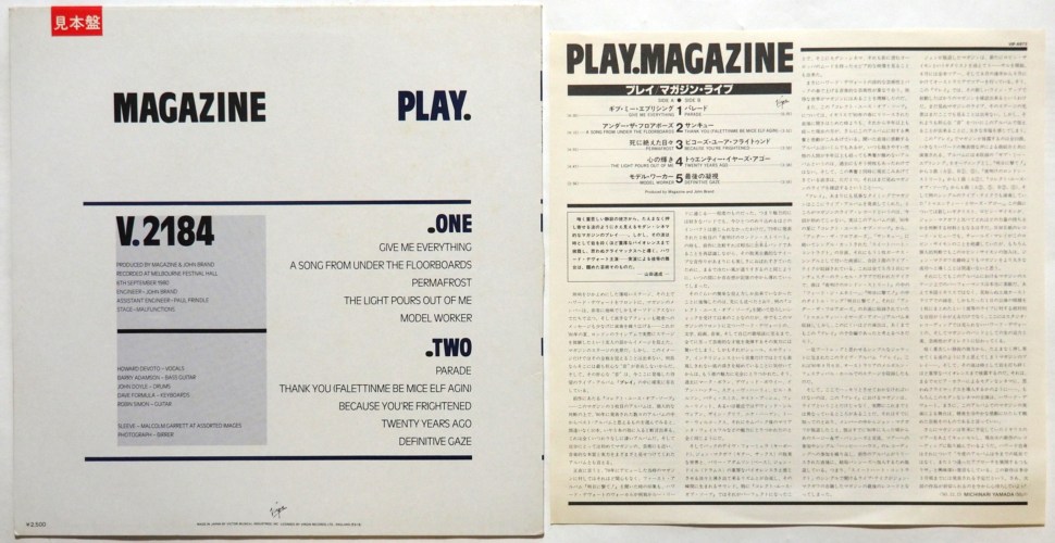 *** LP : Japan 1981 / Virgin / VIP-6972 ***