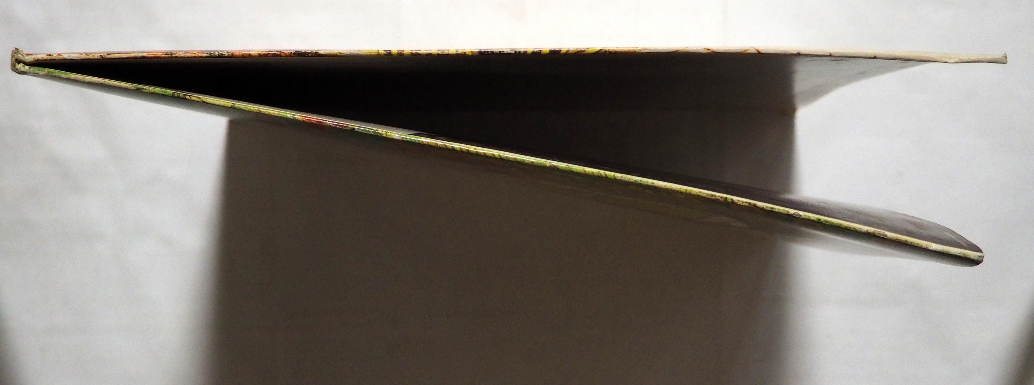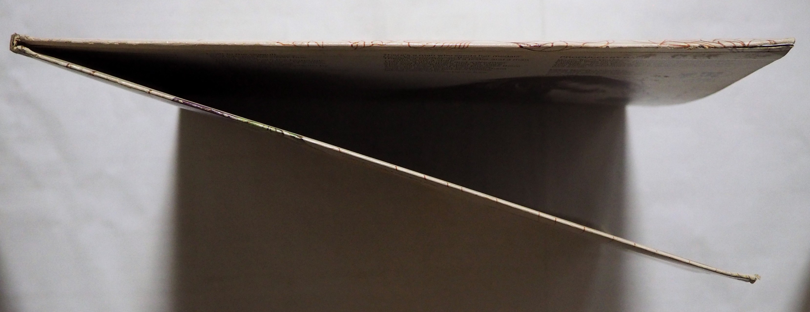 ディスク:レーベルは片面のみ微細なヒゲがほんの少し。盤面は米盤らしいアラが見られます。薄スレ、ヘアライン3少々。B面冒頭に微細な小傷。ざっと全編試聴しました。B1冒頭から10回ほど周回ノイズ。ところどころでチリプチ(A1は特に多め)。B1冒頭以外はまずまず良好に鑑賞できるレベルと思います。実際の音源を参考にしてください。